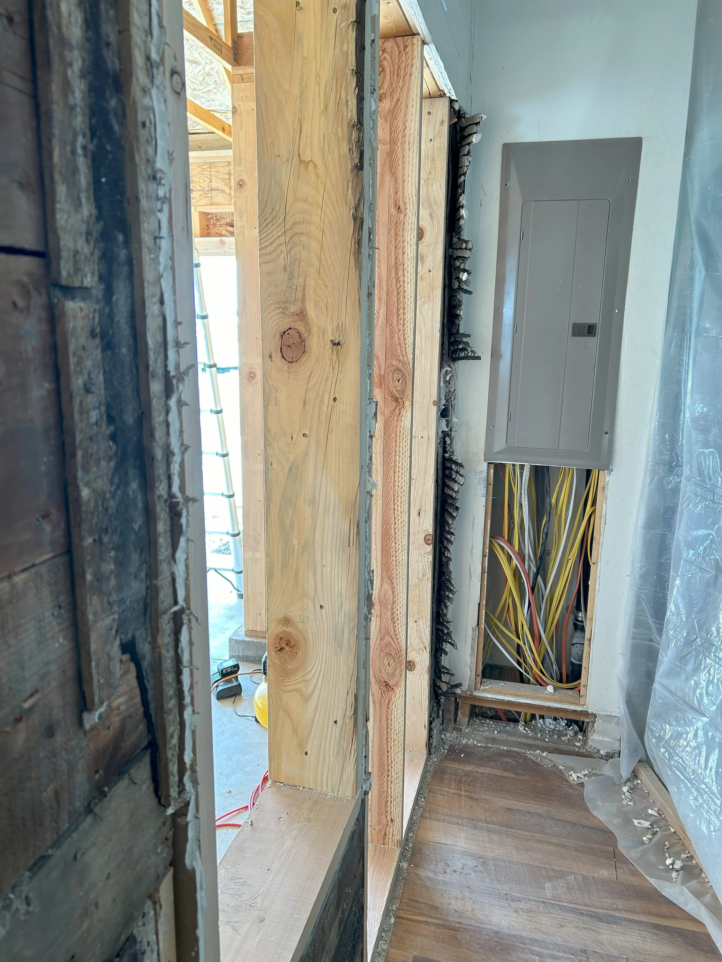 Cabinets, vanities, sinks, countertops, drywall, vinyl flooring, and plank flooring